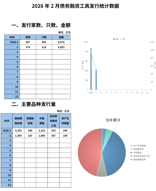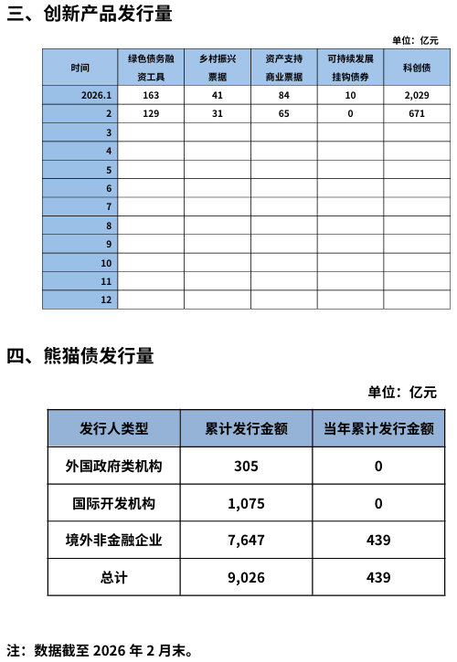 【大河财立方消息】3月31日,中国银行间市场交易商协会披露2026年2月债务融资工具发行统计数据。